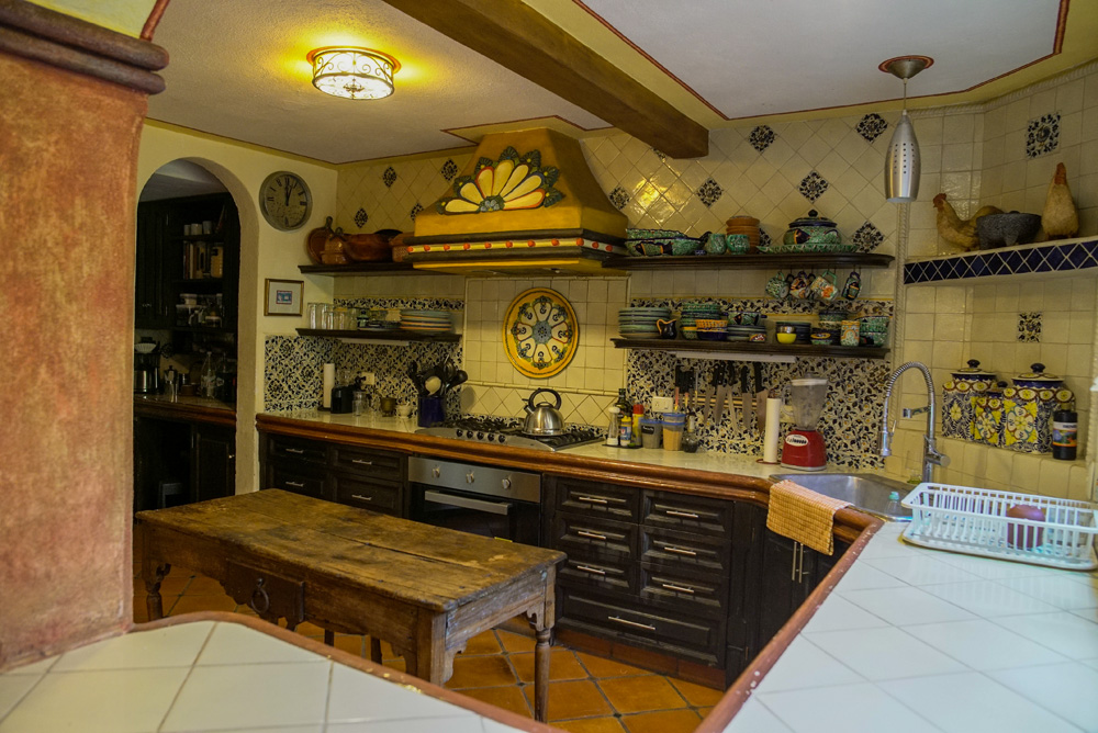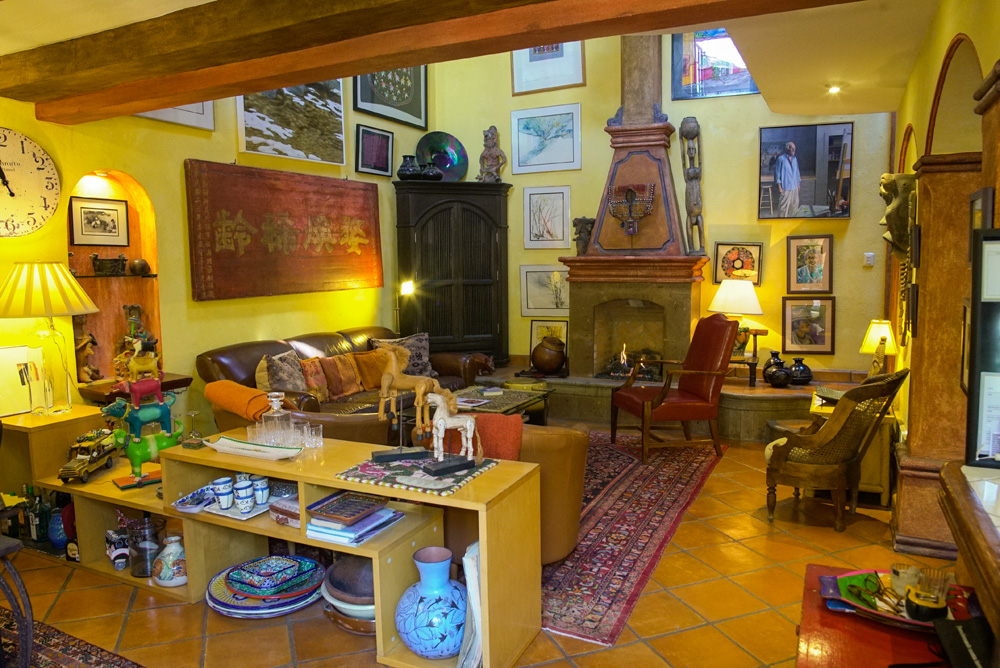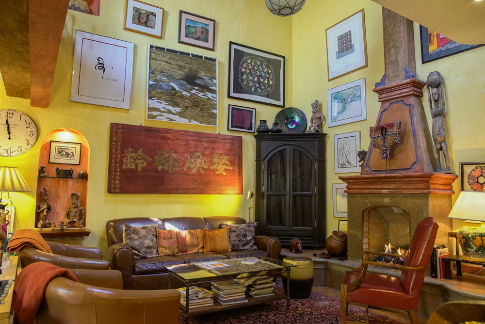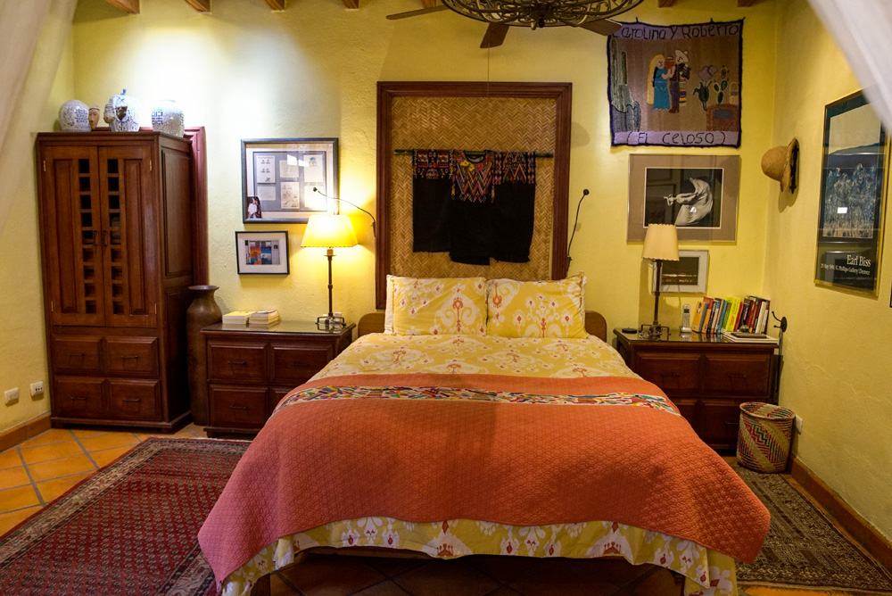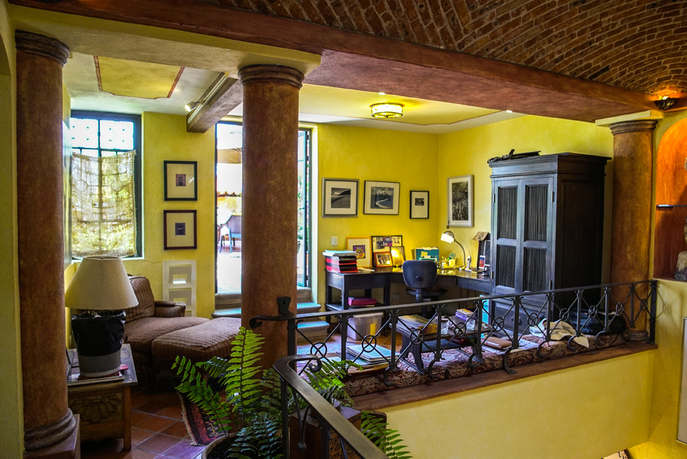The Casa Corazon Penthouse is a spectacular home for the heart. On the main level it features a master suite with a queen bed, gas fireplace and gorgeous bathroom. [Casita Jasmin is adjacent to Casa Corazon and can be rented in conjunction with Casa Corazon, which adds additional sleeping capacity and an additional dimension of privacy - see the separate page for Casita Jasmin]. Also on the main level of the Casa Corazon Penthouse is a fully equipped, modern Colonial-style kitchen, a great room with living area, fireplace and dining area, as well as an arched ceiling and skylights that flood the space with sunlight. On this level there is also an outdoor living room with fireplace and an outdoor dining area. On the second level there is a small office/bedroom with a single bed, and adjacent full bath; as well as a large, sunny office area with a very comfortable reading chair. Outside on the second level there is a broad terrace with an ample seating area with movable umbrellas; plus a large dining area and some additional casual seating. For evening use this area can be lit with a festive array of colored lights. Up an easy flight of steps is the magical "Upper Terraza," a romantic space with ample seating, a dry bar - and a stunning close-up view of the beautifully lit (at night) Parroquia. There is WIFI service throughout Casa Corazon along with regular housekeeping and gardening.